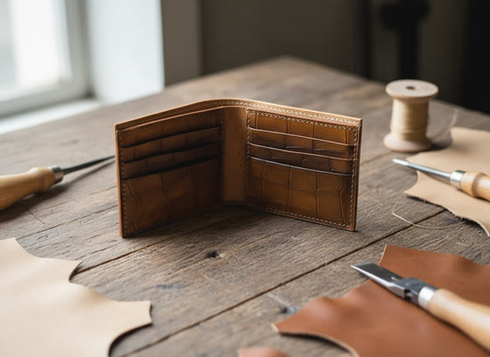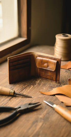 Този портфейл съчетава изчистен класически дизайн с ръчна изработка и устойчиви материали.